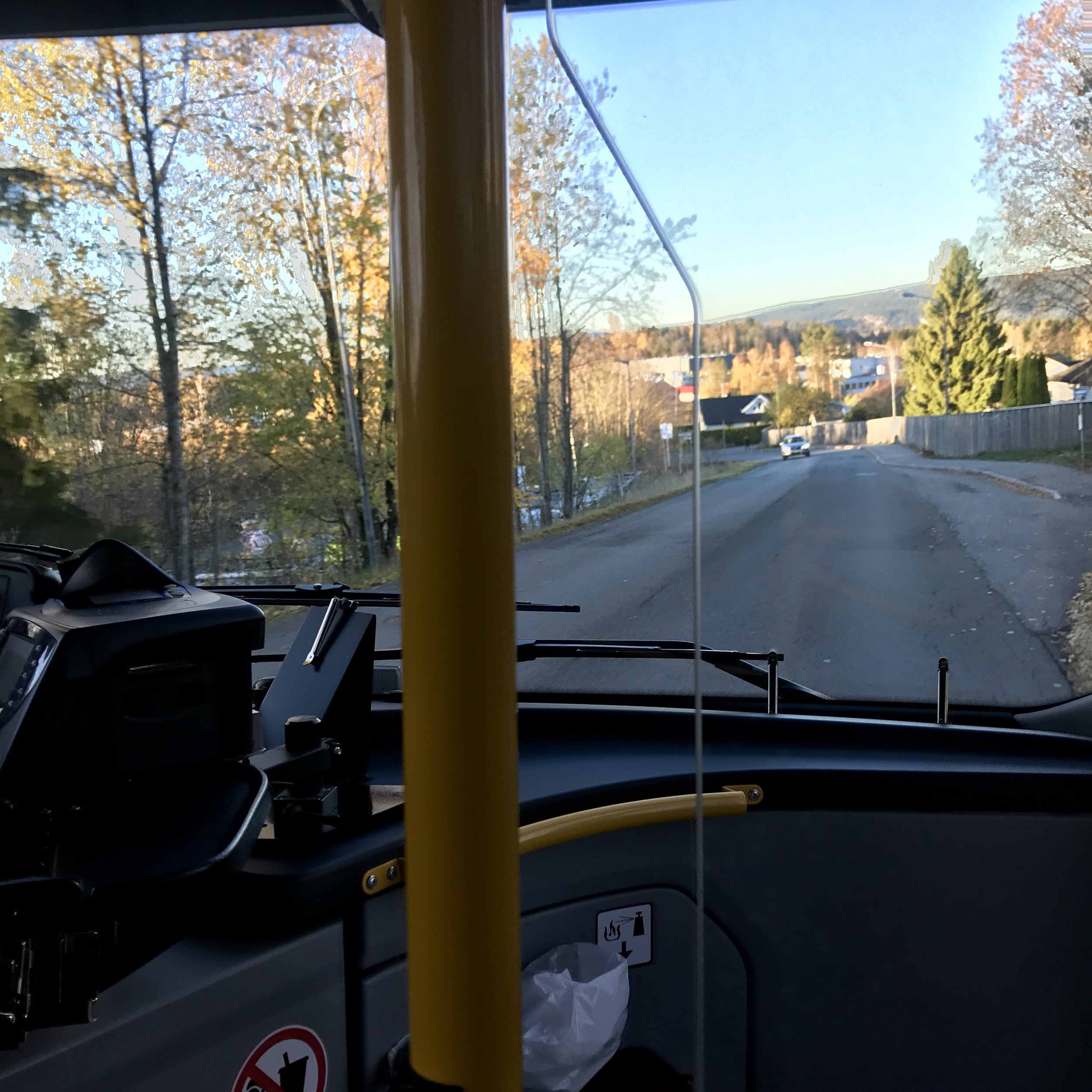 Bussen kommer like etter, og med litt knoting går jeg inn. Heldigvis er det første rushet med skoleelever og andre slutt for en halvtime siden, slik at bussen er nærmest tom.