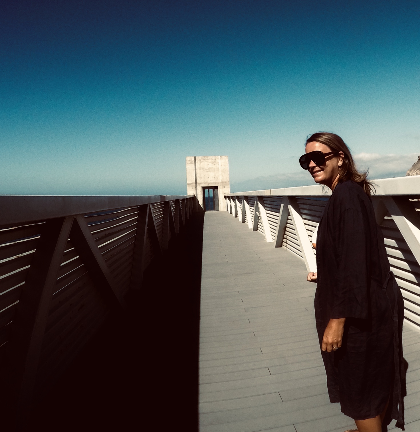 - Det er bra du har dykkermaske på, for nå skal du bade, kommenterer kjæreste-mannen min. Han er ironisk til solbrillene mine og synes ikke de er fine. Jeg derimot synes de er ultra-lekre! Jeg på broa over til heisen, som tar oss ned til stranda. FO…