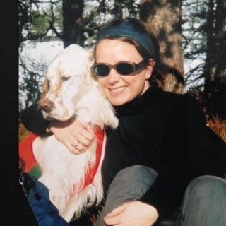 Det er hundene han snakker om. To brune og hvite engelske settere, som jeg setter høyt.