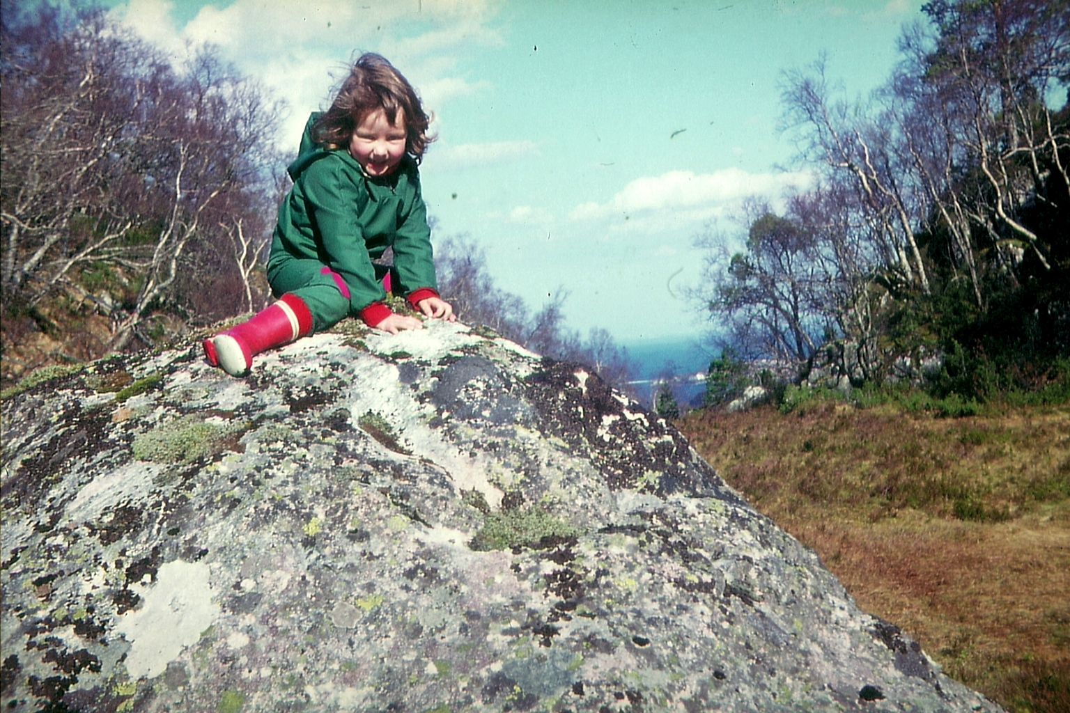 Begge beina er plantet i bakken. Den venstre armen holder den høyre og den er strukket ut rett foran meg. Nå skal jeg opp i stående stilling.