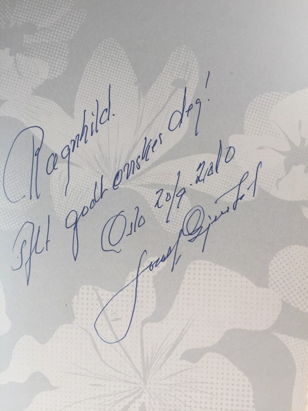 Jeg er så nervøs da forfatteren Ingar Slettan Kolloen åpner opp døra fra innsiden, en mann som vanligvis har en beroligende effekt på meg og får meg til å le, men ikke i dag. Min høyre fot vender seg bort fra meg, hele høyre side rister og jeg greier knapt gå. Jeg er veldig glad jeg tok stokken min, tenker jeg, uten den hadde jeg ikke klart dette.