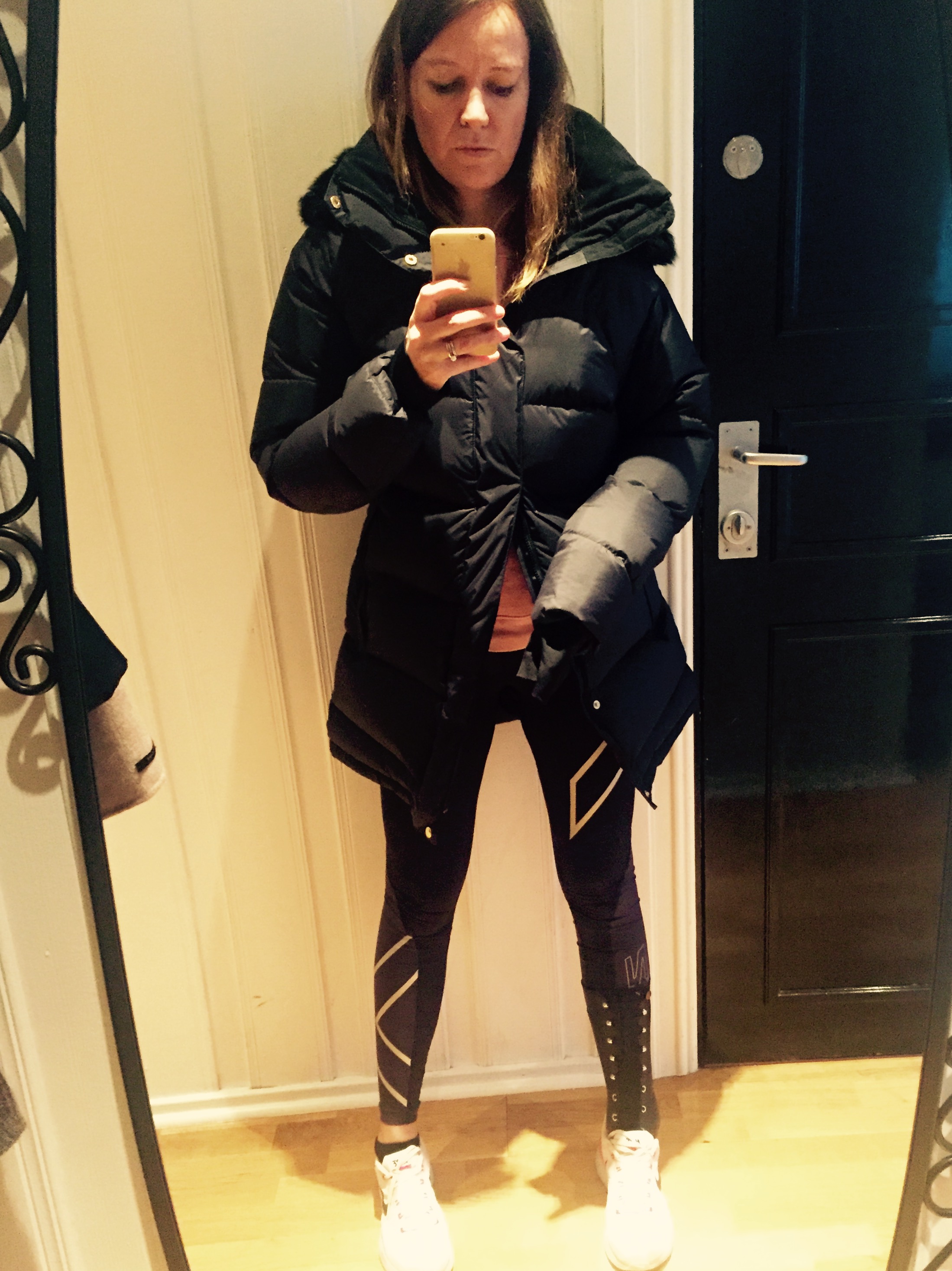 På vei til trening. På min høyre fot er min splitters nye håndsydde skinne i svart skinn.