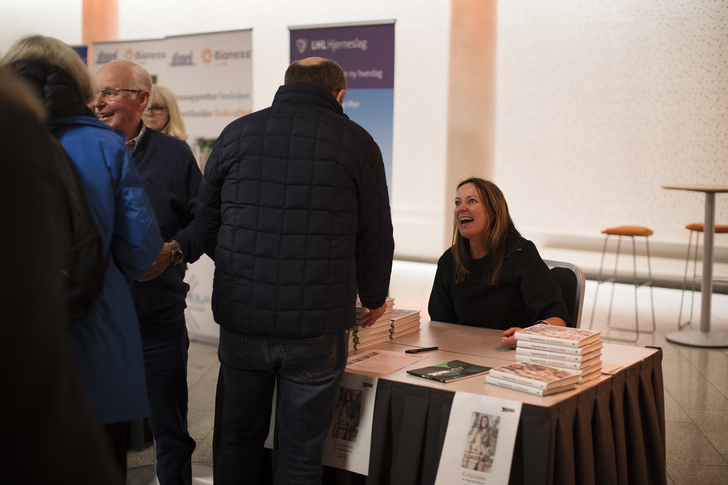 Det blir en flott kveld. Jeg signerer bøker. Noen gråter. Mange er yngre. Enkelte er det umulig å se på at de har hatt slag.