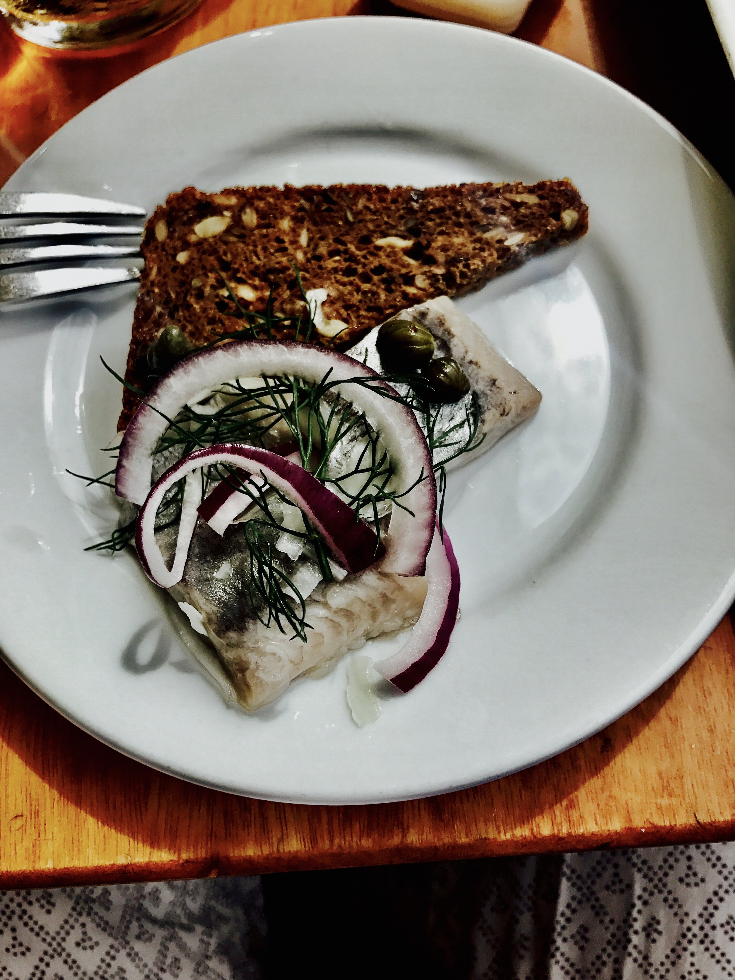 Jeg har vært i København flere ganger før, jeg har til og med bodd i Kongens by, så jeg insisterer på at vi skal spise lunsj nede i havnekvarteret Kongens Nyhavn. Det er så hyggelig å sitte ved sjøen og ta inn synet av de flere hundre år gamle husene som er bygd her. Vi ruller inn til Nyhavn, der det kryr av turister, men sultne som vi er, får vi både rugbrød og sild med ”en lille” snaps til.